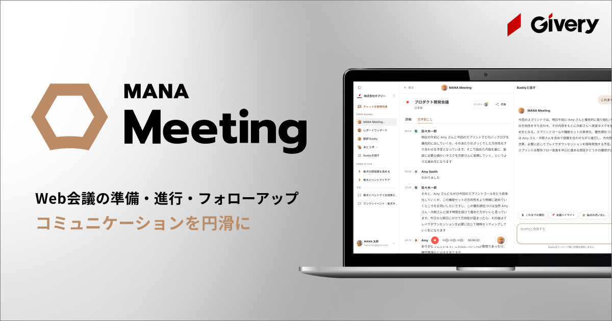 ギブリー、「MANA Studio」にてWeb会議を支援するAIエージェント「MANA Meeting」を新たに提供開始